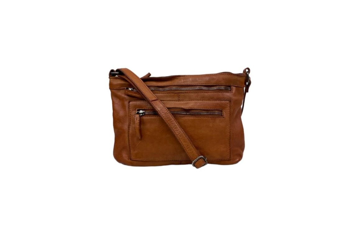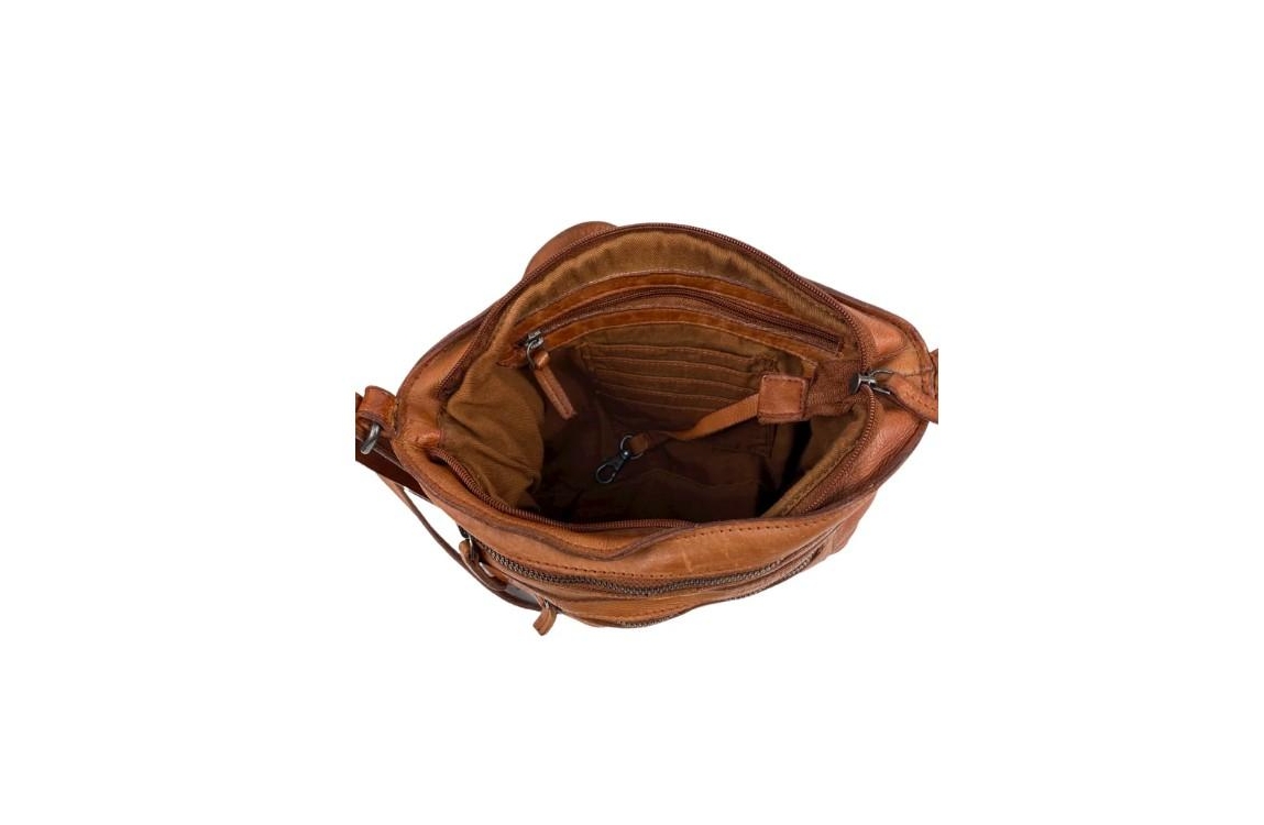 Stijlvolle cognac schoudertas van soepel leer uit de Harrington Road serie van DSTRCT. De tas heeft is afsluitbaar met een bovenrits. Op de voorzijde zitten twee ritsvakken. Binnenin zit een ritsvakje, een insteekvak voor bijv. je smartphone. Op de achterzijde van de tas zit een ritsvak. Tevens is het DSTRCT logo mooi verwerkt in het leer op de achterkant van de tas. Met de lange verstelbare schouderband kun je de tas op elke gewenste lengte over de schouder of schuin over het lichaam dragen.