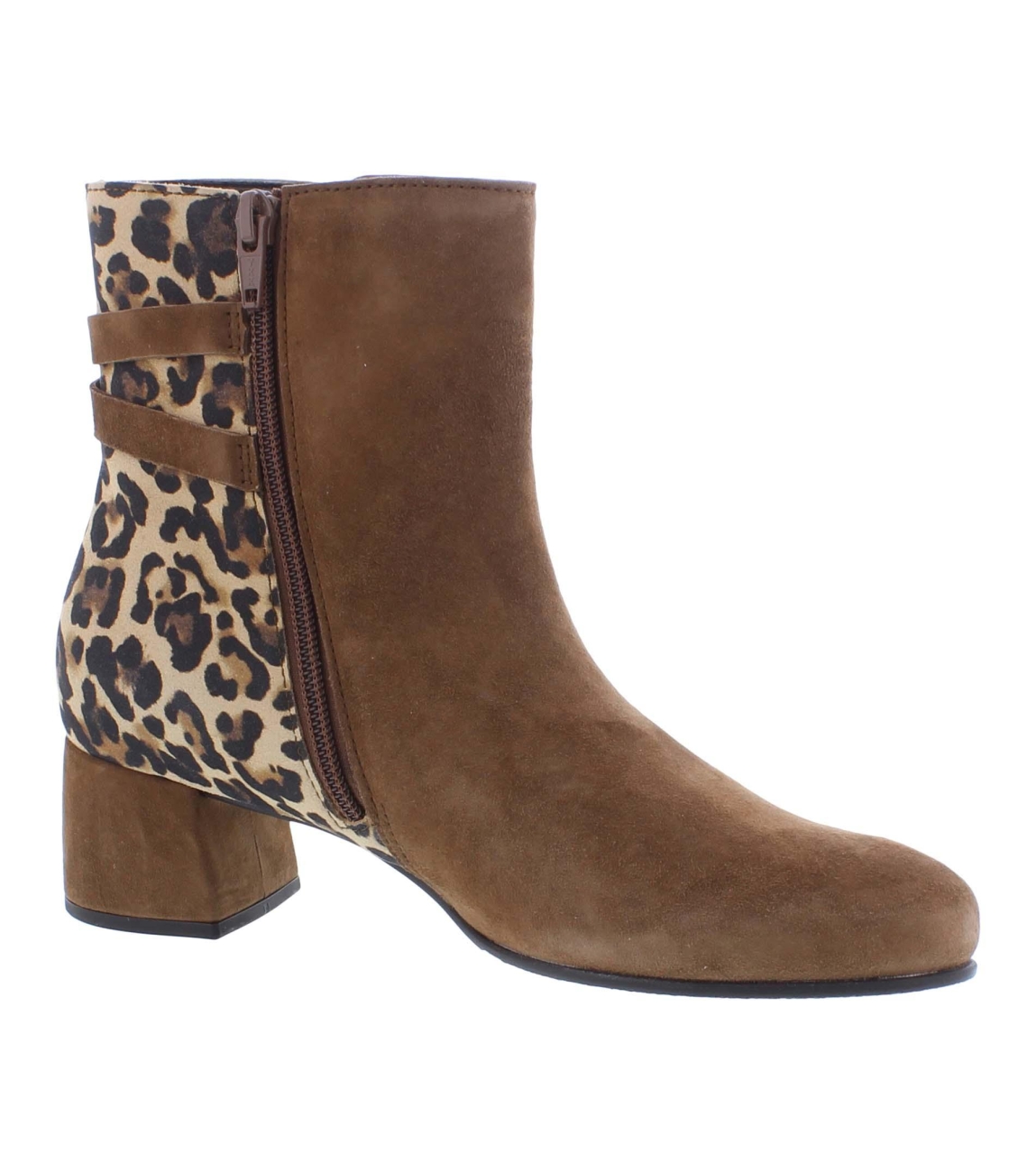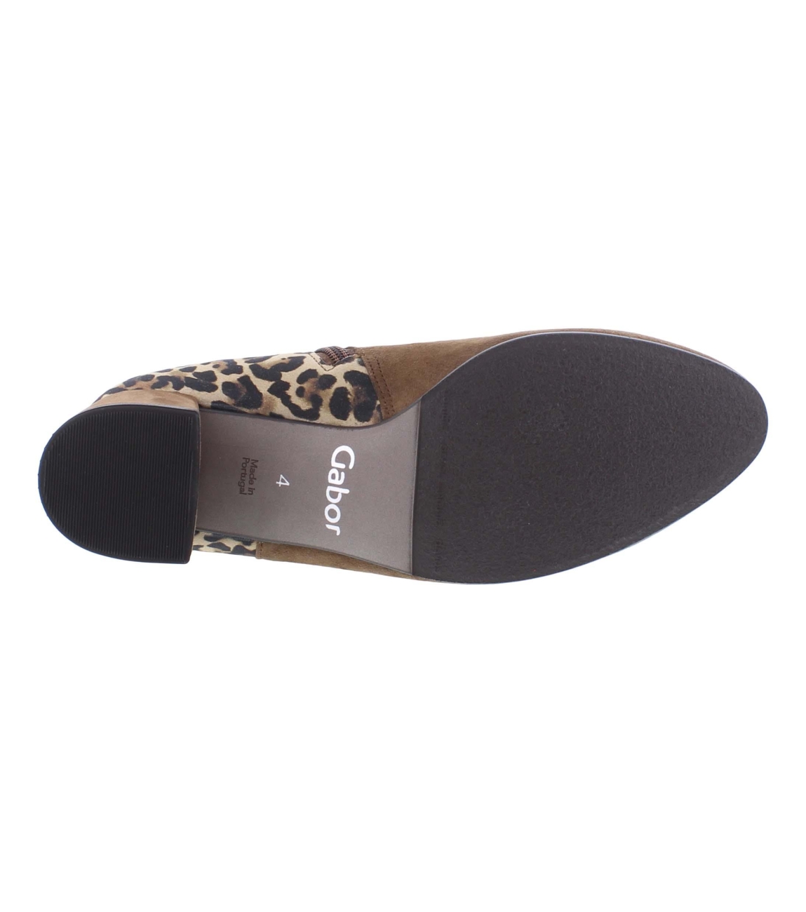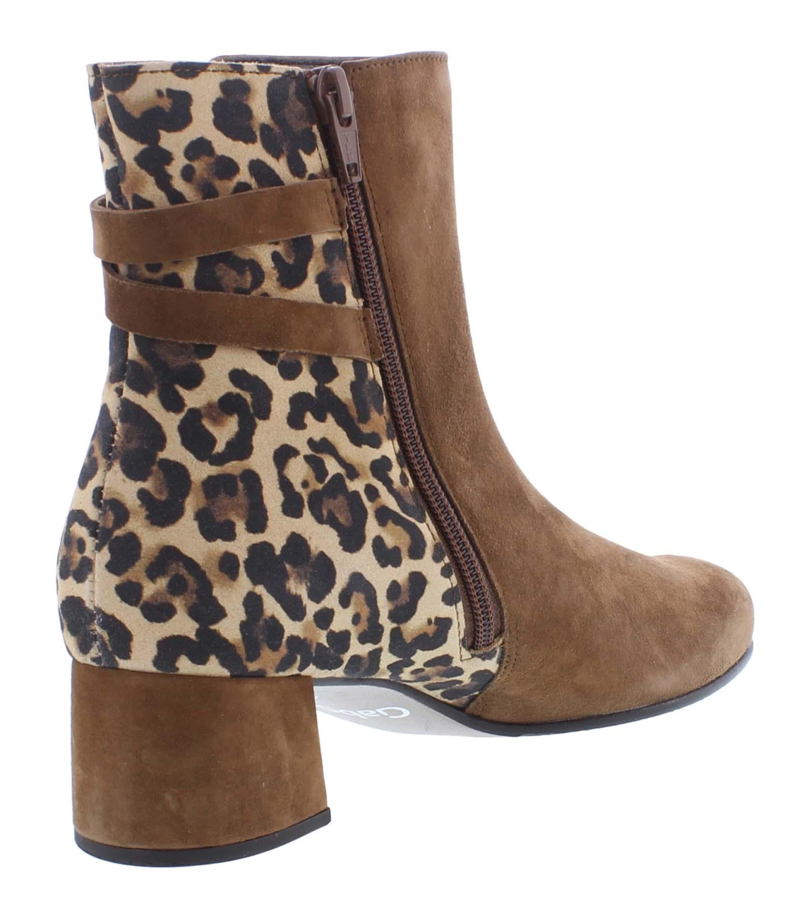 Gabor enkellaars bruin met rits, print op de enkel, gekleed met hak.