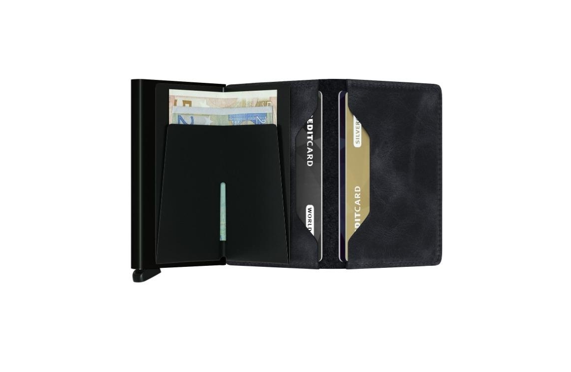 De Secrid Miniwallet is compact van formaat, maar biedt verrassend veel opbergruimte. Je kunt er 4 verdikte of 6 platte kaarten in kwijt, aangevuld met nog eens 4 extra kaarten, bankbiljetten, bonnetjes en visitekaartjes.