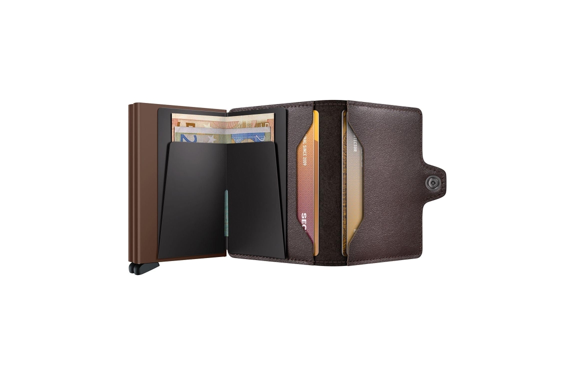 Uitgerust met twee Cardprotectors biedt de Twinwallet ruimte voor 16 kaarten, bankbiljetten en bonnetjes. Onze grootste wallet, maar nog steeds compact van formaat. Samen met een stevige sluiting en omhulsel om extra kaarten, bankbiljetten en bonnen op te bergen, kan de Twinwallet veel kwijt, maar blijft het compact van formaat.